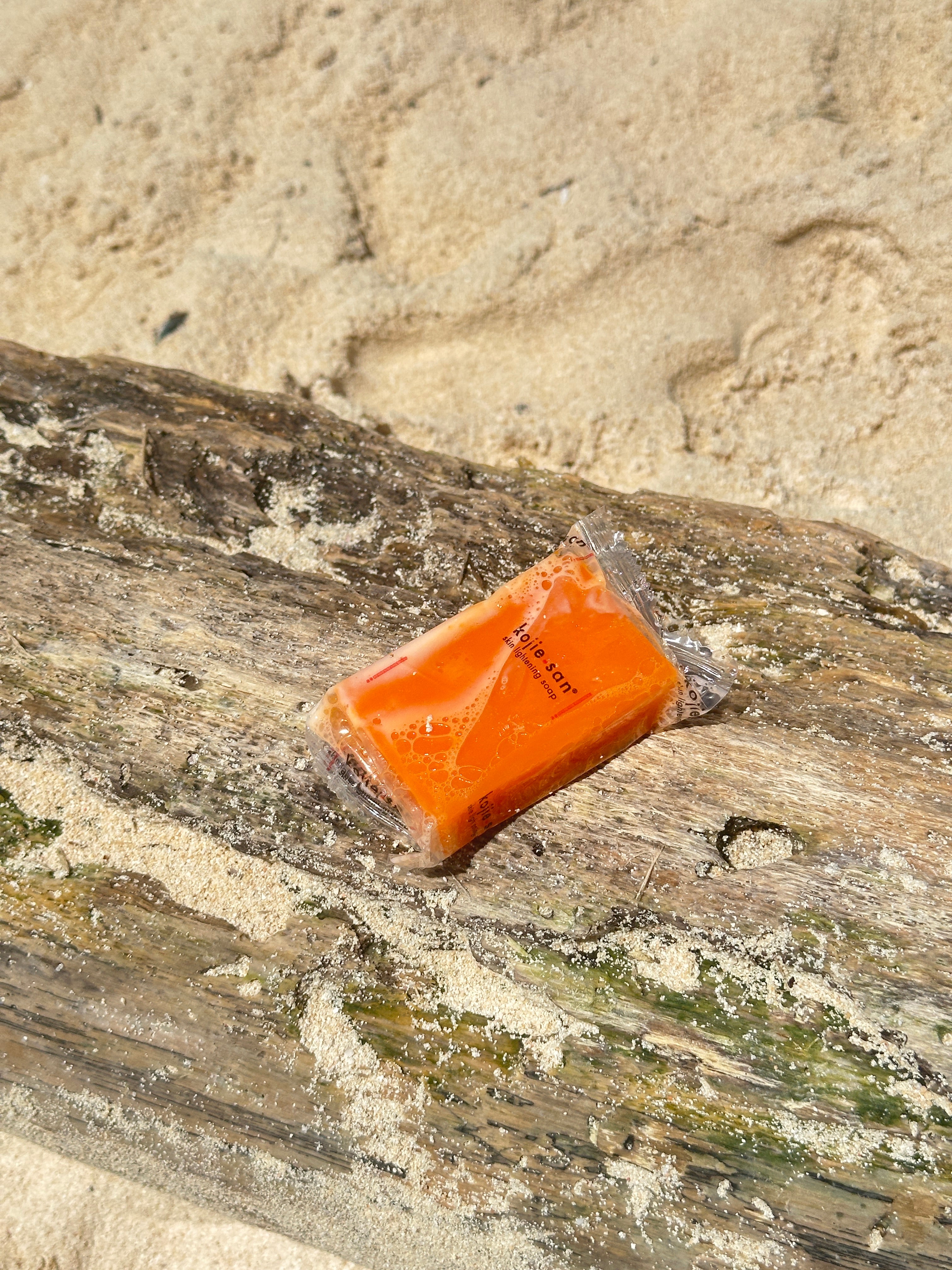 Logo Kojie San : bien net, pas flou ni déformé. Couleur orange vif du savon, visible à travers l’emballage transparent. Les faux sont souvent trop pâles ou trop foncés.