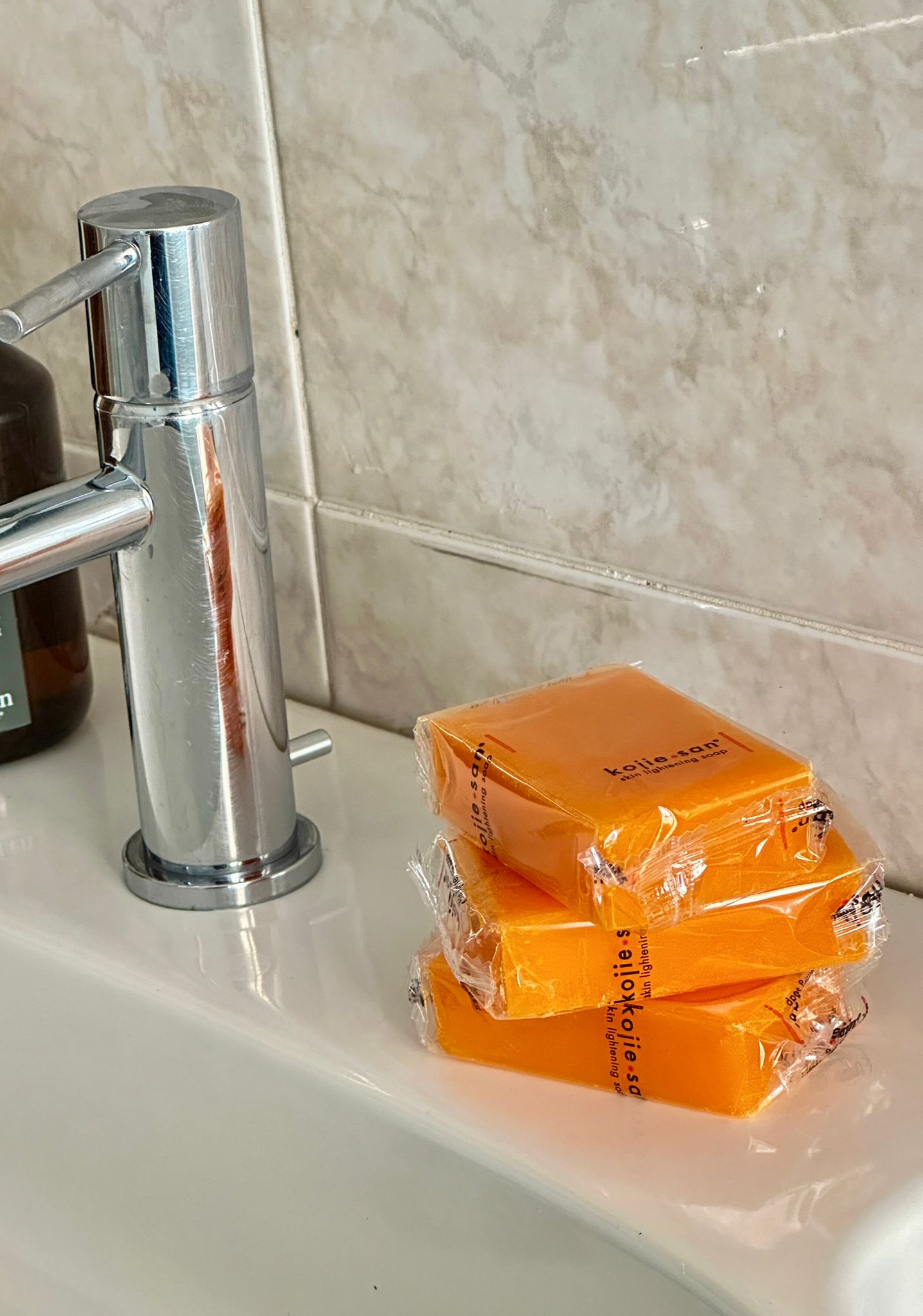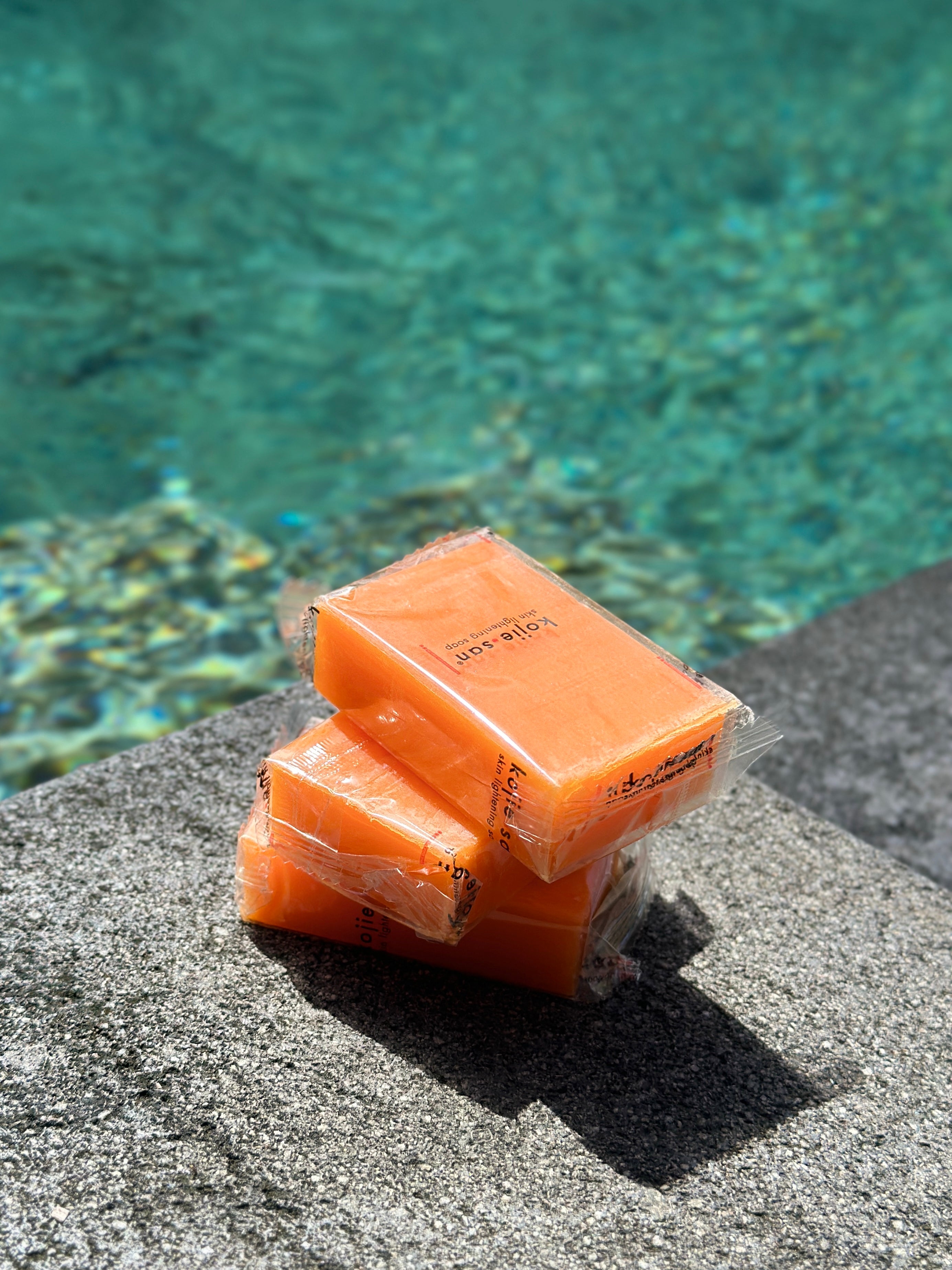 Logo Kojie San : bien net, pas flou ni déformé. Couleur orange vif du savon, visible à travers l’emballage transparent. Les faux sont souvent trop pâles ou trop foncés.